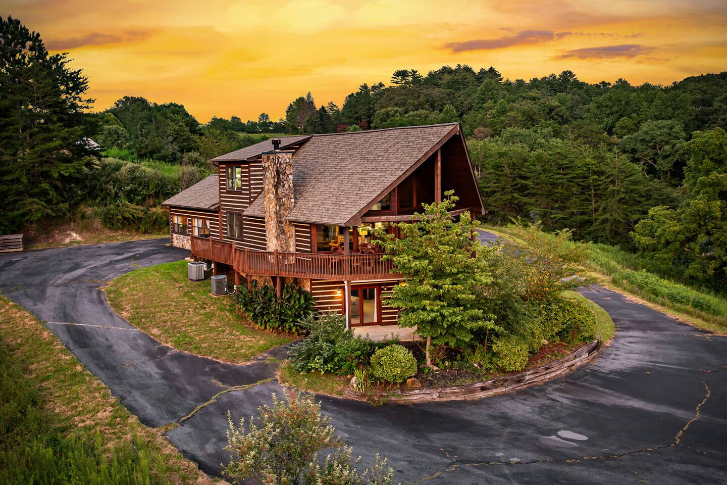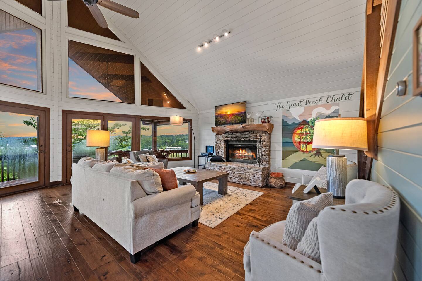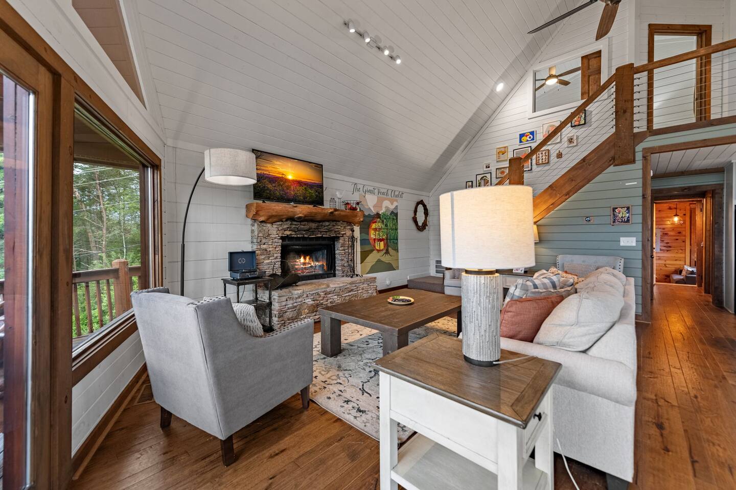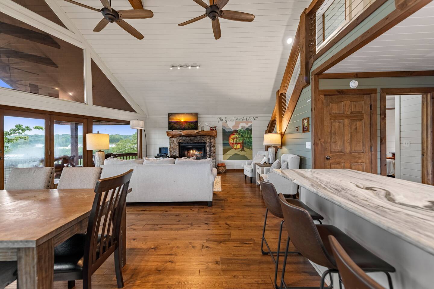 Welcome to your 5-bedroom, 3-bath mountain cabin designed with families in mind. Tucked into the trees with mountain views yet only minutes from town, this retreat offers the best of both worlds: privacy in nature with easy access to Blue Ridge adventures. Gather in the open living room by the wood-burning fireplace, let the kids enjoy their own space in the Family Suite with crib and extra lounge, or end the day with a soak in the private hot tub. The fire pit with cozy swings is perfect for marshmallows under the stars, while the large paved driveway makes parking a breeze—even with a trailer. ★ Highlights • Sleeps 10: 2 kings, 3 queens, + crib & pack n play • “Family Suite” with extra living room + bedrooms for added privacy • Hot tub, fire pit with swings & mountain-view porch • 3 bathrooms (towels, hair dryers & toiletries included) • Large paved driveway fits 5+ vehicles + trailer • Full kitchen, Smart TVs, record player, games & books • Baby/toddler gear: crib (sheets included), pack n play, 2 high chairs, baby bath, changing pad, toddler dishes, toys, books, white noise machine ★ Why Guests Love Peach Chalet ✔️ Space for multiple families or groups ✔️ Clean, comfortable & welcoming stay ✔️ Experienced, responsive host ✔️ Close to downtown, lake, orchards, wineries & hiking ★ Family-Friendly Touches • Crib + pack n play (crib sheets included; BYO pack n play sheets) • Baby bath, changing pad, baby towel, white noise machine • Toddler dishes, toys, books, and 2 high chairs • Baby gate for peace of mind ★ Living Spaces • Main floor: open living room with Smart TV + wood-burning fireplace • Basement: second living room with Smart TV, gas fireplace, and games • Record player with curated vinyls (The Beatles and Miles Davis) • Additional TV/sitting area in the Family Suite ★ Bedrooms • 5 private bedrooms (2 kings, 3 queens, + full-sized crib and pack n play) • Fresh linens, cozy textures, and plenty of room to unpack • Crib mattress sheet included. BYO pack n play sheets. ★ Kitchen & Dining • Fully stocked kitchen with cookware, bakeware & basics • Keurig coffee maker with drip and k-cup (coffee + creamer provided) • Dining table + island seating, perfect for meals or board games ★ Bathrooms • 3 full bathrooms (1 on each floor) • Towels, hair dryers, and starter toiletries included ★ Outdoor Space • Fire pit with seating for s’mores & late-night chats • Spacious wraparound porch with mountain view • Ample paved driveway for easy access + trailer parking Whether it’s a family reunion, a trip with friends, or a mountain getaway with little ones, Peach Chalet is a Blue Ridge cabin rental you’ll want to return to year after year.