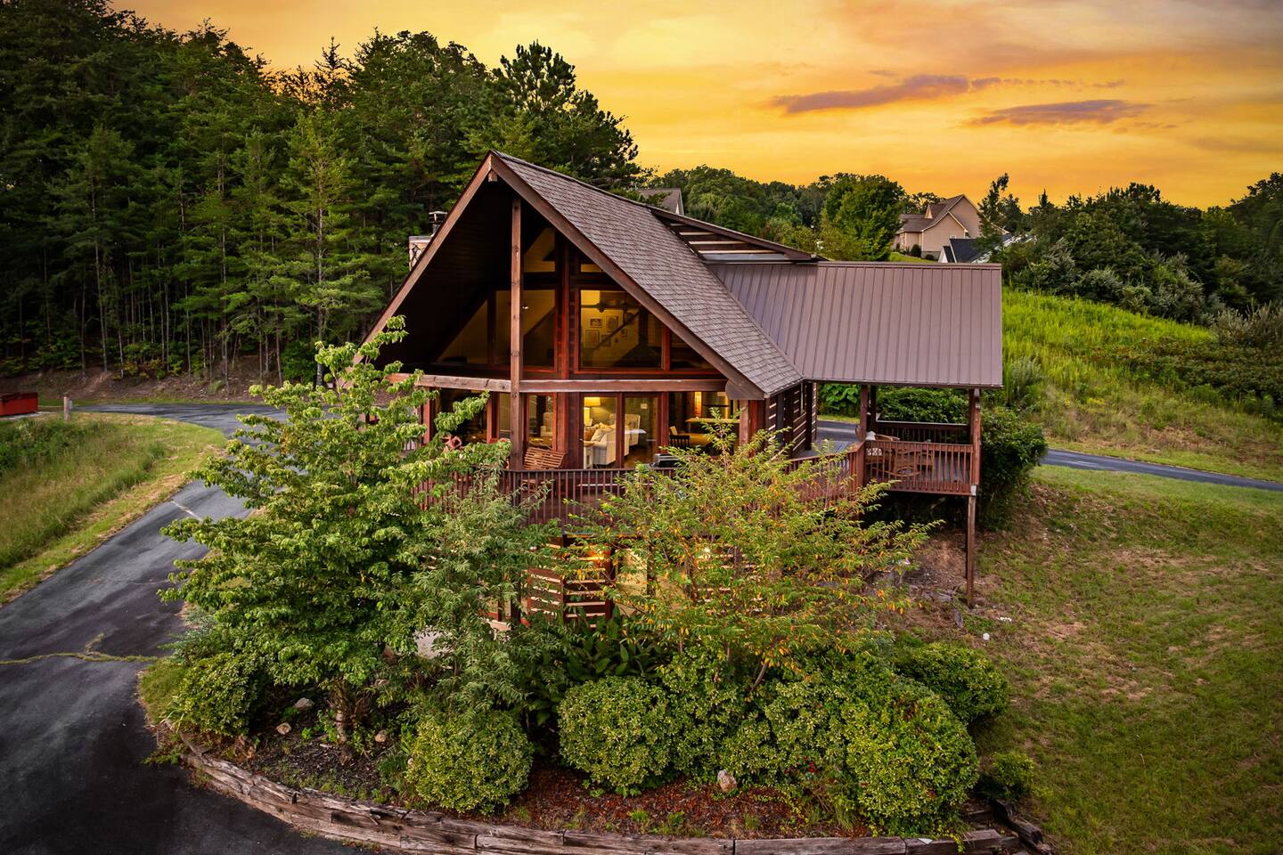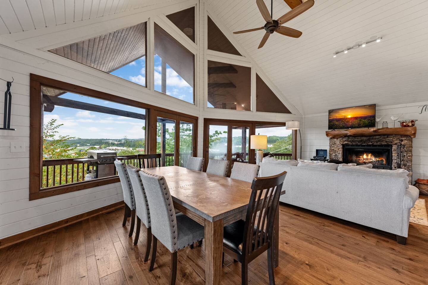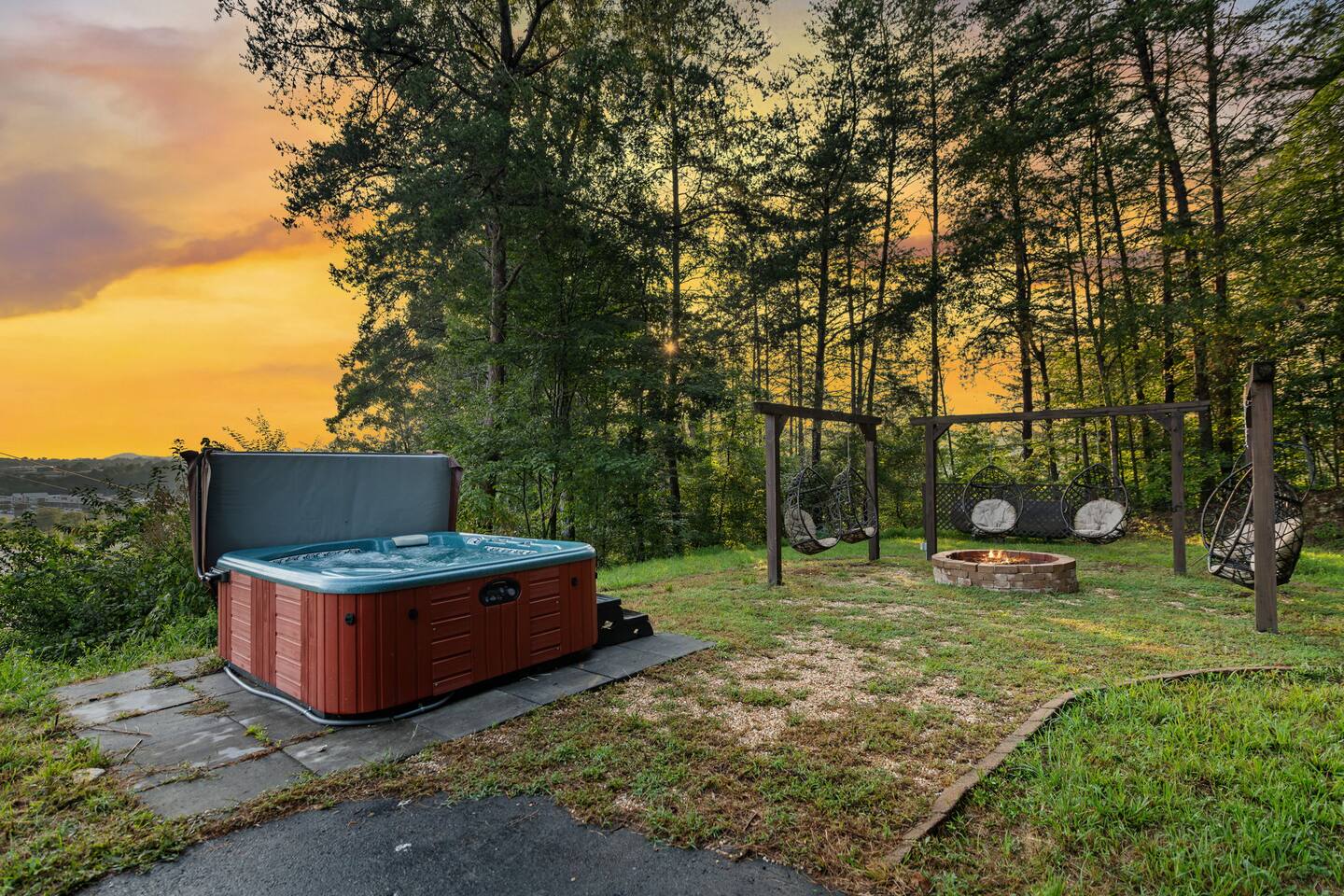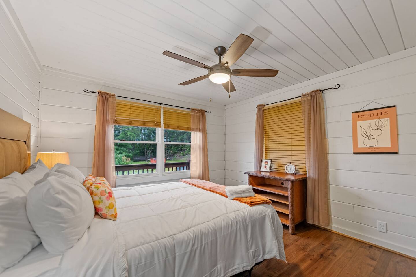 Welcome to your 5-bedroom, 3-bath mountain cabin designed with families in mind. Tucked into the trees with mountain views yet only minutes from town, this retreat offers the best of both worlds: privacy in nature with easy access to Blue Ridge adventures. Gather in the open living room by the wood-burning fireplace, let the kids enjoy their own space in the Family Suite with crib and extra lounge, or end the day with a soak in the private hot tub. The fire pit with cozy swings is perfect for marshmallows under the stars, while the large paved driveway makes parking a breeze—even with a trailer. ★ Highlights • Sleeps 10: 2 kings, 3 queens, + crib & pack n play • “Family Suite” with extra living room + bedrooms for added privacy • Hot tub, fire pit with swings & mountain-view porch • 3 bathrooms (towels, hair dryers & toiletries included) • Large paved driveway fits 5+ vehicles + trailer • Full kitchen, Smart TVs, record player, games & books • Baby/toddler gear: crib (sheets included), pack n play, 2 high chairs, baby bath, changing pad, toddler dishes, toys, books, white noise machine ★ Why Guests Love Peach Chalet ✔️ Space for multiple families or groups ✔️ Clean, comfortable & welcoming stay ✔️ Experienced, responsive host ✔️ Close to downtown, lake, orchards, wineries & hiking ★ Family-Friendly Touches • Crib + pack n play (crib sheets included; BYO pack n play sheets) • Baby bath, changing pad, baby towel, white noise machine • Toddler dishes, toys, books, and 2 high chairs • Baby gate for peace of mind ★ Living Spaces • Main floor: open living room with Smart TV + wood-burning fireplace • Basement: second living room with Smart TV, gas fireplace, and games • Record player with curated vinyls (The Beatles and Miles Davis) • Additional TV/sitting area in the Family Suite ★ Bedrooms • 5 private bedrooms (2 kings, 3 queens, + full-sized crib and pack n play) • Fresh linens, cozy textures, and plenty of room to unpack • Crib mattress sheet included. BYO pack n play sheets. ★ Kitchen & Dining • Fully stocked kitchen with cookware, bakeware & basics • Keurig coffee maker with drip and k-cup (coffee + creamer provided) • Dining table + island seating, perfect for meals or board games ★ Bathrooms • 3 full bathrooms (1 on each floor) • Towels, hair dryers, and starter toiletries included ★ Outdoor Space • Fire pit with seating for s’mores & late-night chats • Spacious wraparound porch with mountain view • Ample paved driveway for easy access + trailer parking Whether it’s a family reunion, a trip with friends, or a mountain getaway with little ones, Peach Chalet is a Blue Ridge cabin rental you’ll want to return to year after year.