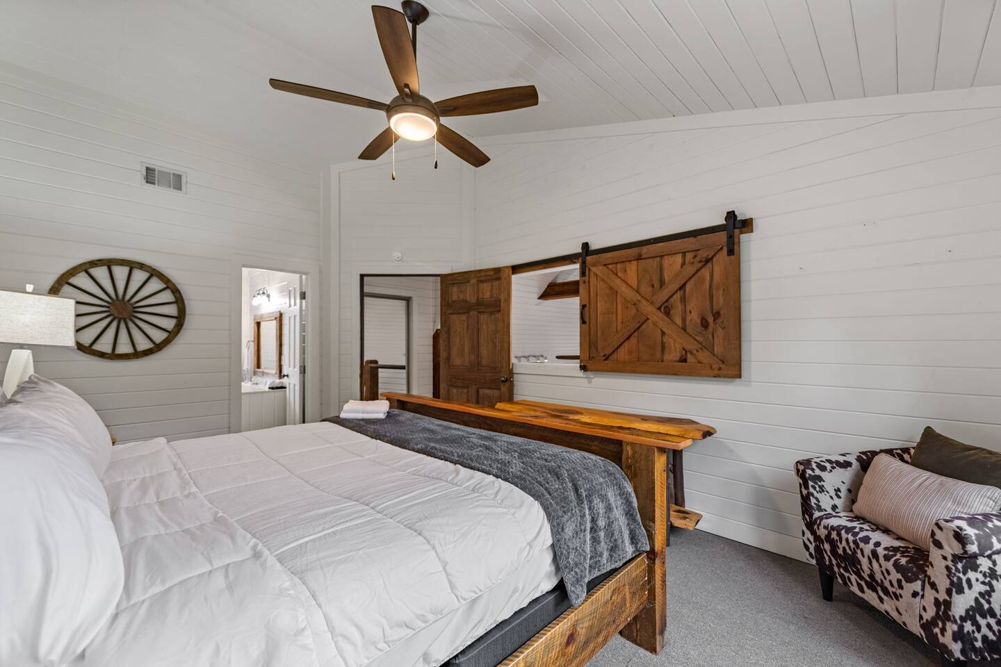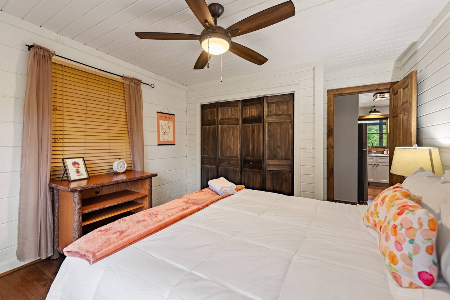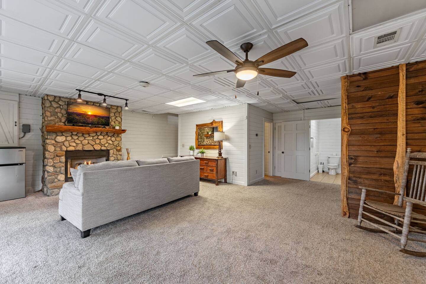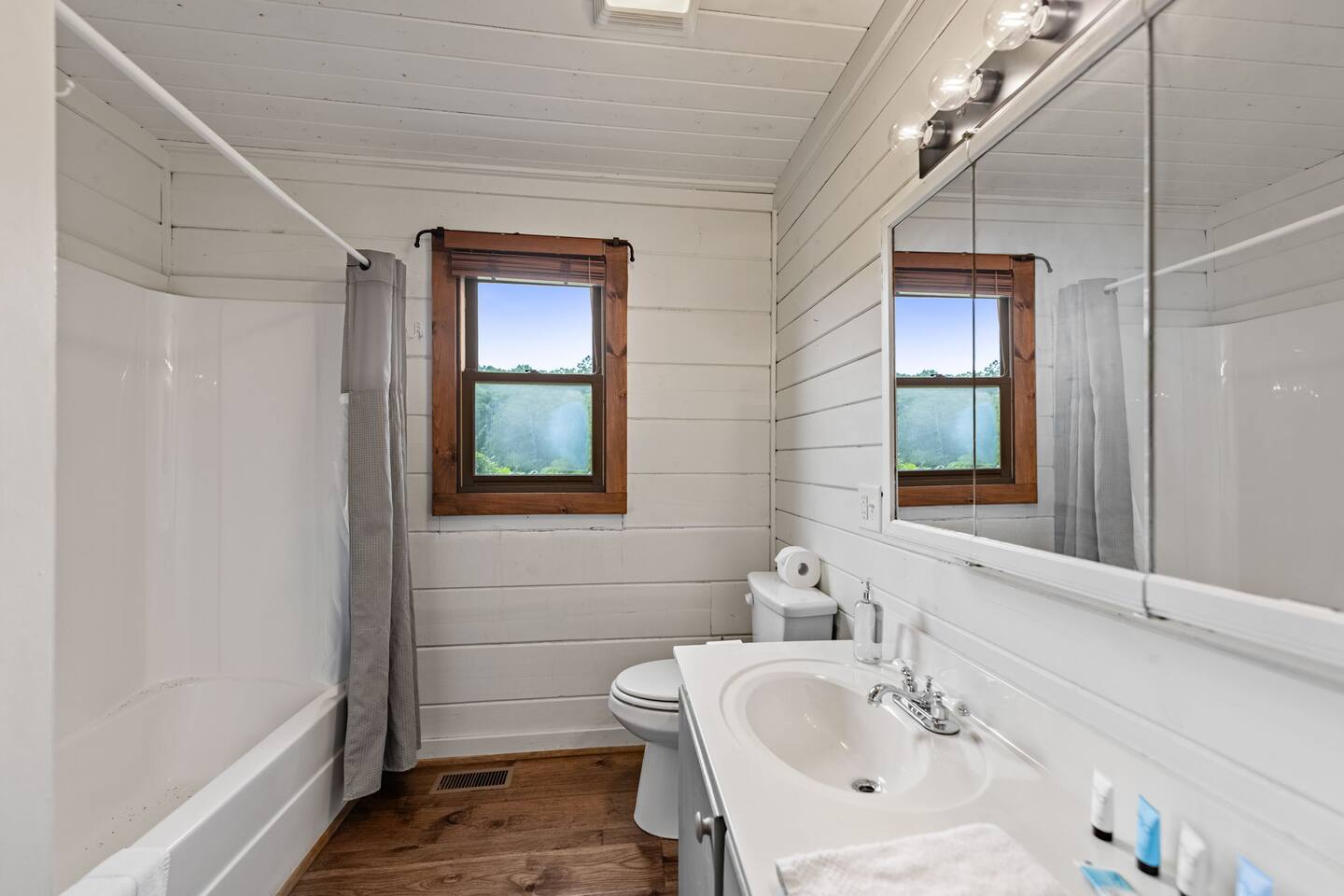 Welcome to your 5-bedroom, 3-bath mountain cabin designed with families in mind. Tucked into the trees with mountain views yet only minutes from town, this retreat offers the best of both worlds: privacy in nature with easy access to Blue Ridge adventures. Gather in the open living room by the wood-burning fireplace, let the kids enjoy their own space in the Family Suite with crib and extra lounge, or end the day with a soak in the private hot tub. The fire pit with cozy swings is perfect for marshmallows under the stars, while the large paved driveway makes parking a breeze—even with a trailer. ★ Highlights • Sleeps 10: 2 kings, 3 queens, + crib & pack n play • “Family Suite” with extra living room + bedrooms for added privacy • Hot tub, fire pit with swings & mountain-view porch • 3 bathrooms (towels, hair dryers & toiletries included) • Large paved driveway fits 5+ vehicles + trailer • Full kitchen, Smart TVs, record player, games & books • Baby/toddler gear: crib (sheets included), pack n play, 2 high chairs, baby bath, changing pad, toddler dishes, toys, books, white noise machine ★ Why Guests Love Peach Chalet ✔️ Space for multiple families or groups ✔️ Clean, comfortable & welcoming stay ✔️ Experienced, responsive host ✔️ Close to downtown, lake, orchards, wineries & hiking ★ Family-Friendly Touches • Crib + pack n play (crib sheets included; BYO pack n play sheets) • Baby bath, changing pad, baby towel, white noise machine • Toddler dishes, toys, books, and 2 high chairs • Baby gate for peace of mind ★ Living Spaces • Main floor: open living room with Smart TV + wood-burning fireplace • Basement: second living room with Smart TV, gas fireplace, and games • Record player with curated vinyls (The Beatles and Miles Davis) • Additional TV/sitting area in the Family Suite ★ Bedrooms • 5 private bedrooms (2 kings, 3 queens, + full-sized crib and pack n play) • Fresh linens, cozy textures, and plenty of room to unpack • Crib mattress sheet included. BYO pack n play sheets. ★ Kitchen & Dining • Fully stocked kitchen with cookware, bakeware & basics • Keurig coffee maker with drip and k-cup (coffee + creamer provided) • Dining table + island seating, perfect for meals or board games ★ Bathrooms • 3 full bathrooms (1 on each floor) • Towels, hair dryers, and starter toiletries included ★ Outdoor Space • Fire pit with seating for s’mores & late-night chats • Spacious wraparound porch with mountain view • Ample paved driveway for easy access + trailer parking Whether it’s a family reunion, a trip with friends, or a mountain getaway with little ones, Peach Chalet is a Blue Ridge cabin rental you’ll want to return to year after year.