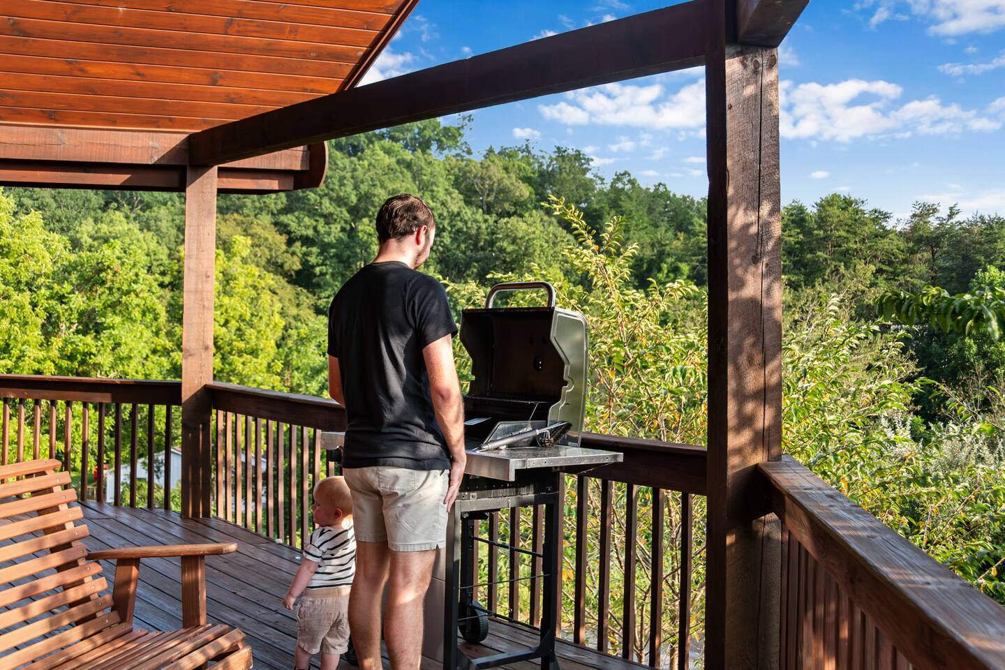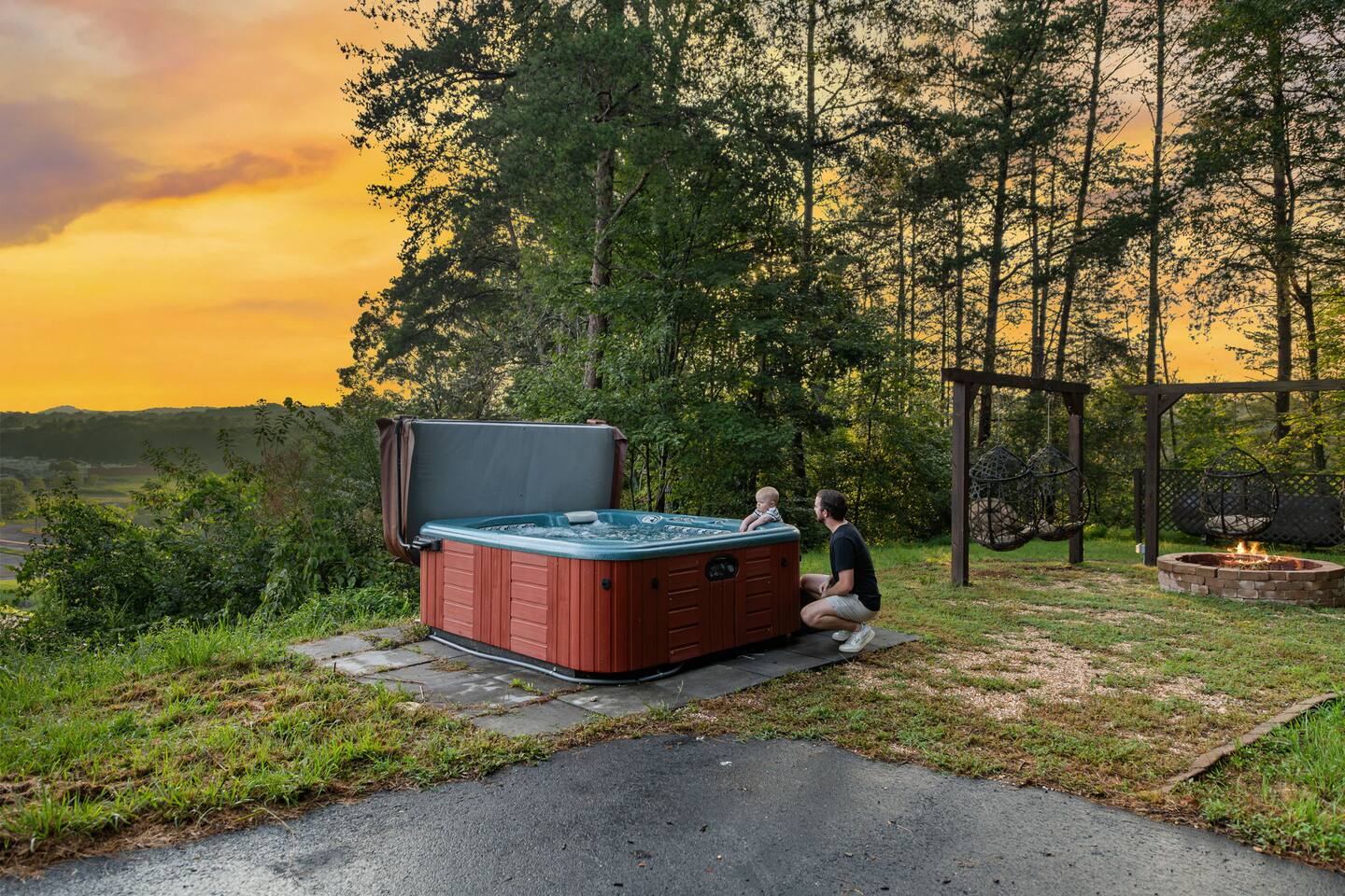 - Family-friendly Blue Ridge cabin with fire pit & trailer parking - Fire pit with swings by the mountain view - Baby-ready: crib, pack n play, bath, high chairs, toys & more - Large paved driveway for multiple vehicles + trailer - 6 minutes to downtown Blue Ridge, 8 minutes to Mercier Orchard