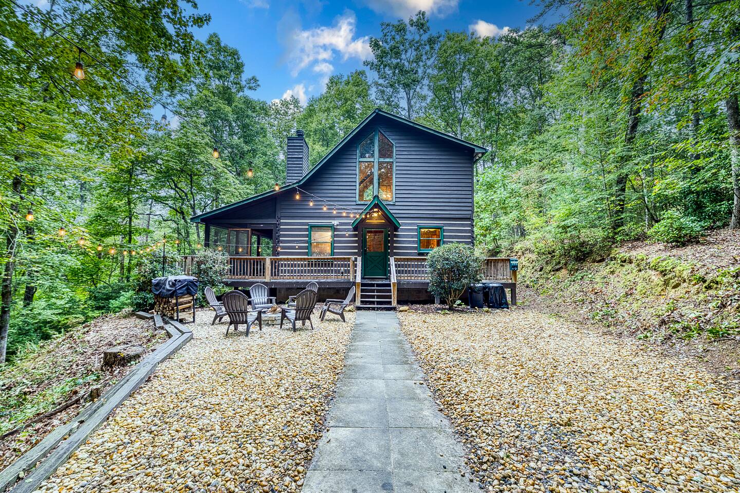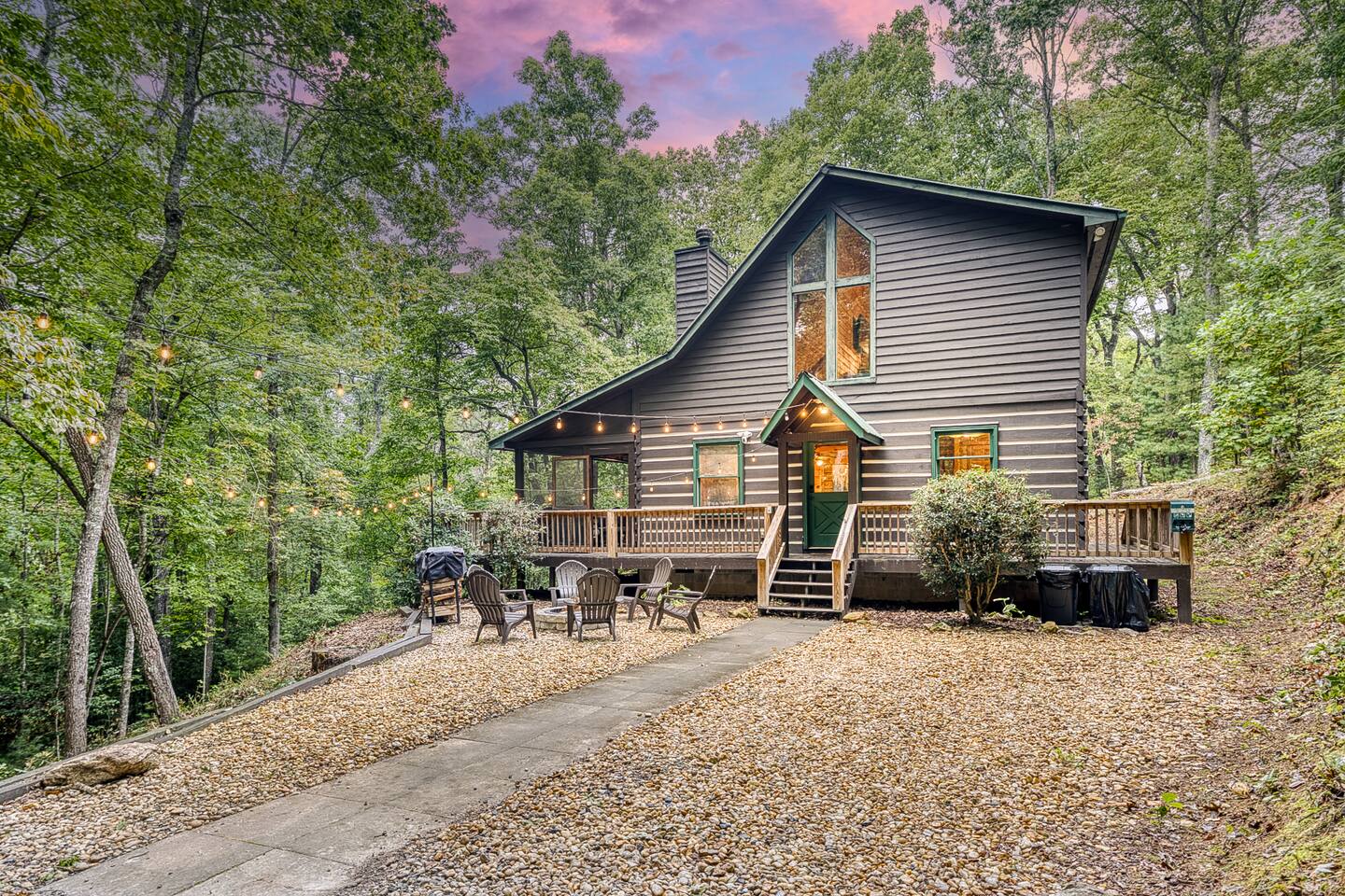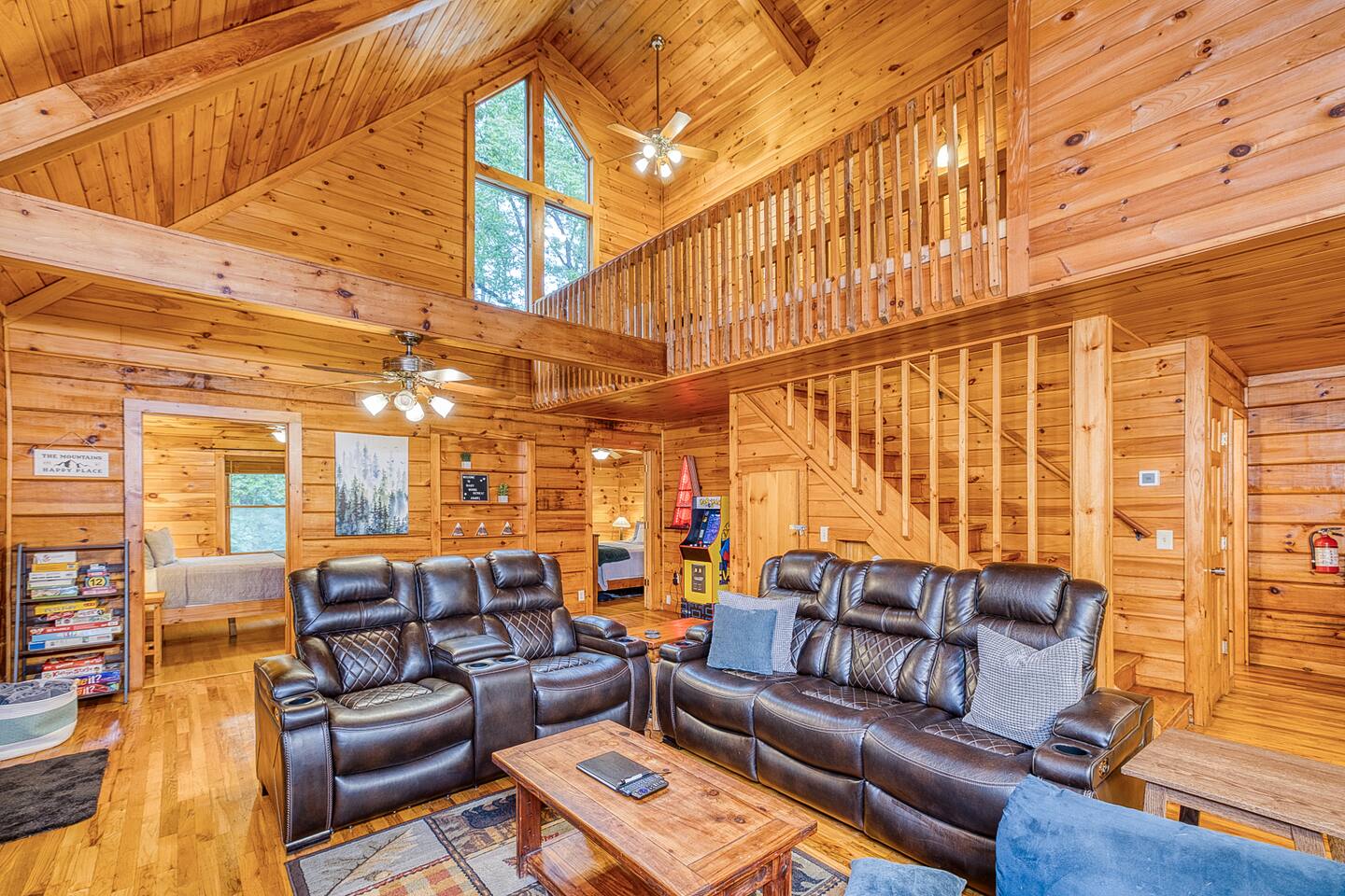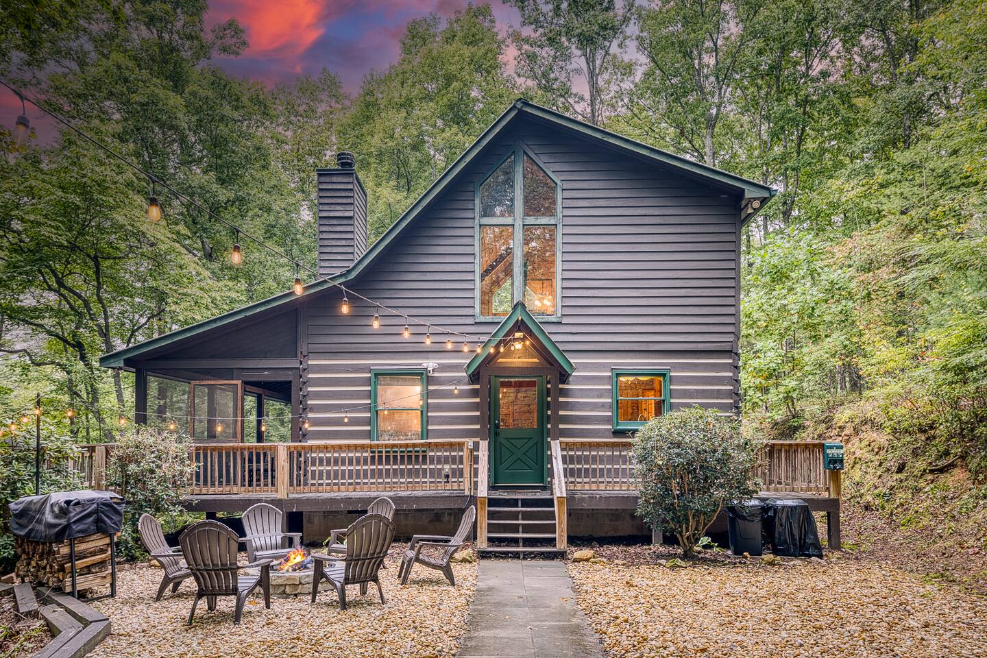 Enjoy a serene retreat where we don't just allow dogs - we LOVE them! Dogs stay free and enjoy amenities like a leash, bowls, crate, toys, towels, & waste bags. After exploring the mountains, unwind while enjoying a fire pit, hot tub, outdoor games, & spacious deck. The fun continues inside with arcade games, board games, & puzzles. Perfect for relaxing with family or friends, surrounded by nature. Highlights ☀ Sleeps 6: 1 king (upstairs), 2 queens (one in each downstairs bedroom) ☀ 2 bathrooms with standing showers + a jacuzzi tub in upstairs bathroom (toiletries included) ☀ No pet fee (up to 2 dogs) ☀ Dog amenities: leash, bowls, 1 crate, bags, toys, towel, flashlight ☀ Private cabin at end of the street surrounded by woods ☀ Indoor & outdoor games: cornhole, giant Jenga, arcade games, board games, puzzles ☀ Wood-burning fireplace (firewood included) ☀ Smart TVs in all bedrooms and living room ☀ Propane grill (propane included) Guests love: - Host responsiveness & communication - Thoughtful dog amenities - Peaceful environment - Endless entertainment, even on rainy days ★★ Kind words from past guests ★★ "My family and I were so relaxed here. Most peaceful vacation I've ever had." -Patricia "We selected this cabin for it's location, amenities and dog friendliness. We were pleased on all three counts and were very comfortable during our stay. The entire place was super clean." -M "What a great weekend away! This was a perfect place to enjoy some time in the woods with the whole family, even our little four legged friend was able to join! From the sweet welcome gift waiting for us when we walked in to the games, hot tub, and all the kitchen supplies we needed to prepare a gourmet dinner, there really wasn't anything else we could have asked for. Thanks Jessica for making our stay better than we even imagined it would be." -Stephanie "Jessica is an amazing host. The cabin is exactly as pictured, absolutely beautiful, clean, and super cozy." -Jelanie ☆ Primary Bedroom (Upstairs) - King bed - Ensuite bathroom with shower and jacuzzi tub ☆ Bedrooms 2 & 3 (Downstairs) - Queen bed in each - Standing shower - Full washer and dryer (laundry pods included) ☆ Kitchen - Keurig AND drip coffee (K-cups included) - Fully equipped with pots, pans, crockpot, baking dishes, serving platters, toaster, food processor, mixer, and more - Dining space for 6 - Included extras: k-cups, tea, creamer, Splenda, salt, pepper, cooking oil, hand soap, dish soap, dishwasher tabs ☆ Living Room - Seating for 6: recliner sofas and comfy arm chair - Arcade games, board games, puzzles, movies, and books for all ages - Wood-burning fireplace (firewood and fire starter included) ☆ Outdoors - Hot tub on the screened porch - Fire pit under string lights with marshmallow skewers and blankets (firewood included) - Propane grill (propane included) - Peaceful wrap-around deck with 6 Adirondack chairs - Lounge furniture for 6 - Games: giant jenga and cornhole ☆ Dogs - Max 2 dogs please - Amenities for dogs: 1 crate, food and water bowls, leash, waste bags, flashlight, toys, and towels - *IMPORTANT: dogs must be house-trained and well-behaved. No puppies please. Please keep dogs off furniture. Dogs must be leashed outside (there could be wild animals). Please clean up after your dog. ☆ WiFi - Internet speeds are around 15-20 mbps download, but internet can be spotty due to rural mountain location