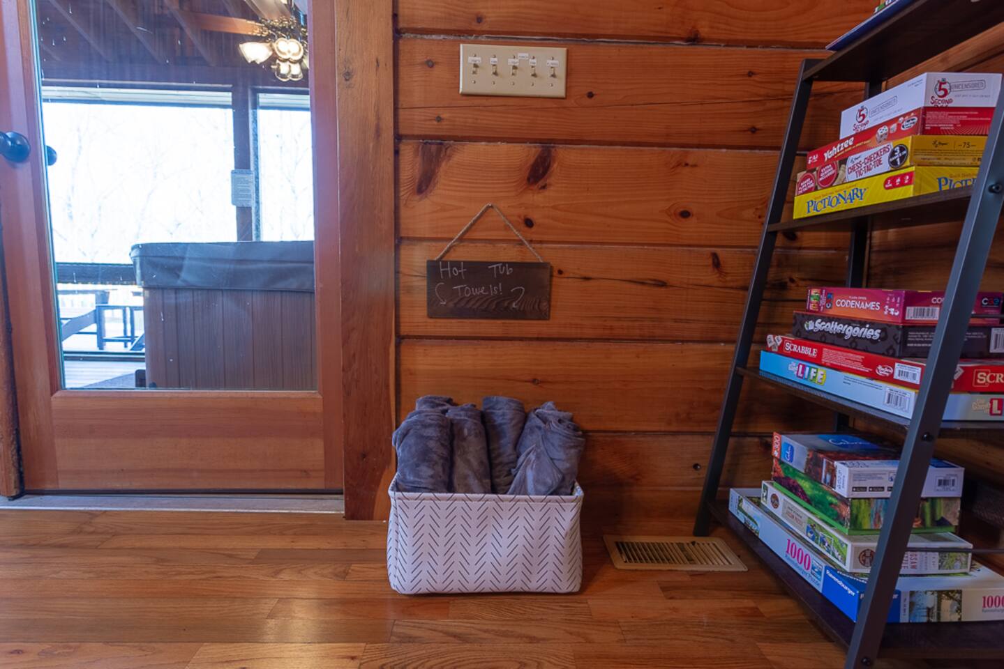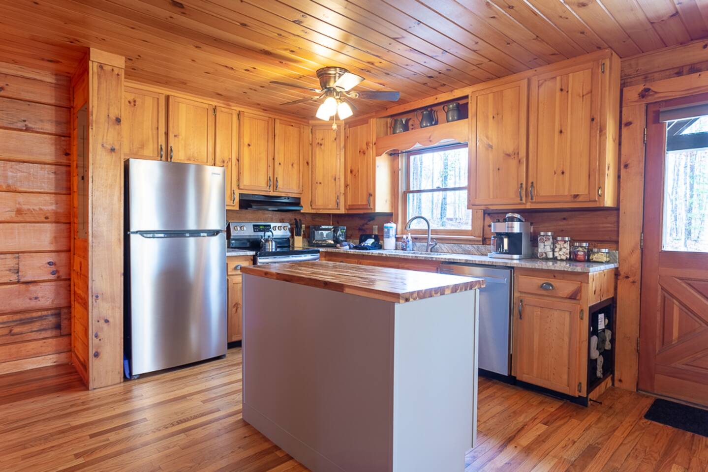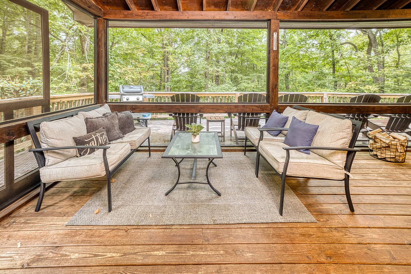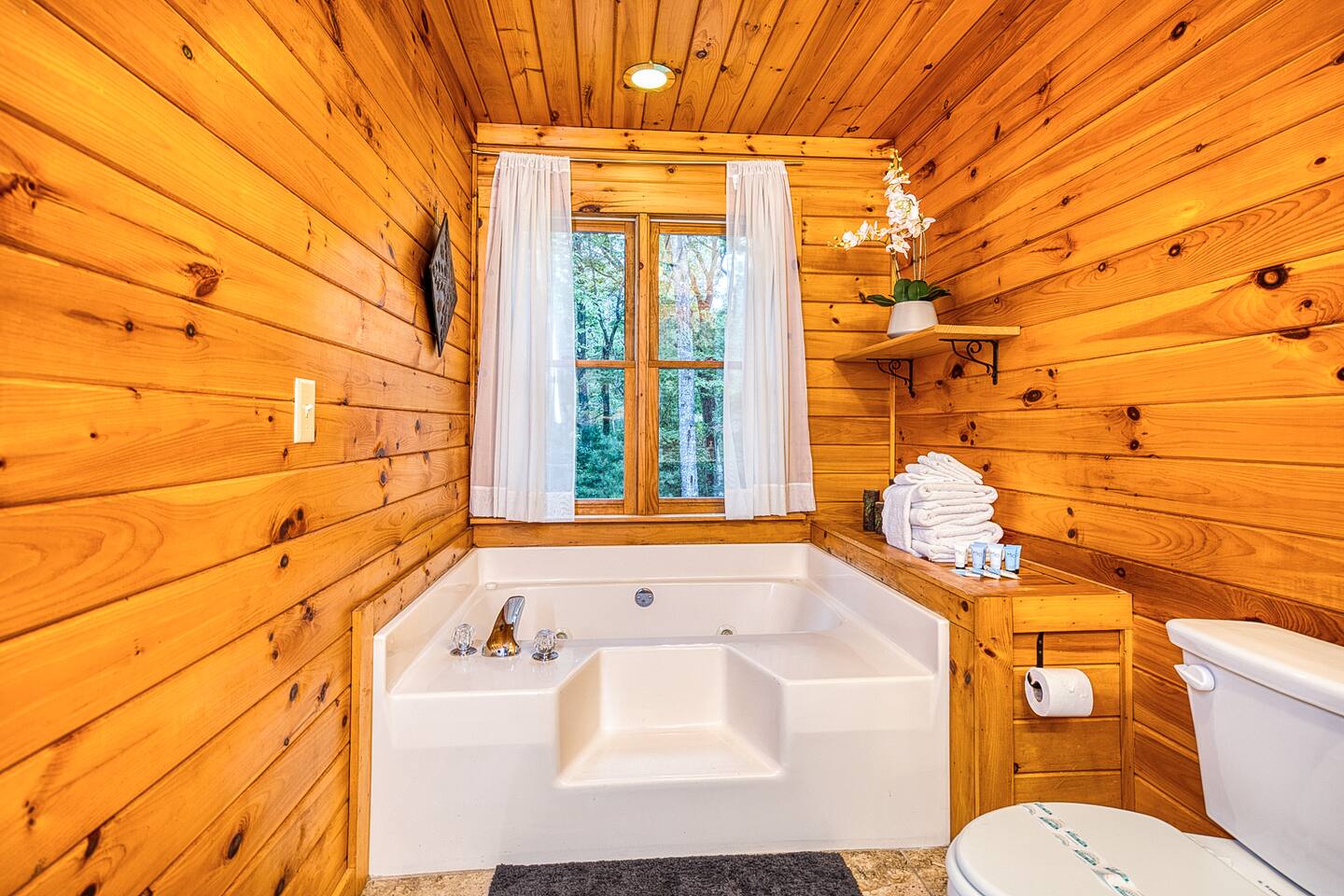 Enjoy a serene retreat where we don't just allow dogs - we LOVE them! Dogs stay free and enjoy amenities like a leash, bowls, crate, toys, towels, & waste bags. After exploring the mountains, unwind while enjoying a fire pit, hot tub, outdoor games, & spacious deck. The fun continues inside with arcade games, board games, & puzzles. Perfect for relaxing with family or friends, surrounded by nature. Highlights ☀ Sleeps 6: 1 king (upstairs), 2 queens (one in each downstairs bedroom) ☀ 2 bathrooms with standing showers + a jacuzzi tub in upstairs bathroom (toiletries included) ☀ No pet fee (up to 2 dogs) ☀ Dog amenities: leash, bowls, 1 crate, bags, toys, towel, flashlight ☀ Private cabin at end of the street surrounded by woods ☀ Indoor & outdoor games: cornhole, giant Jenga, arcade games, board games, puzzles ☀ Wood-burning fireplace (firewood included) ☀ Smart TVs in all bedrooms and living room ☀ Propane grill (propane included) Guests love: - Host responsiveness & communication - Thoughtful dog amenities - Peaceful environment - Endless entertainment, even on rainy days ★★ Kind words from past guests ★★ "My family and I were so relaxed here. Most peaceful vacation I've ever had." -Patricia "We selected this cabin for it's location, amenities and dog friendliness. We were pleased on all three counts and were very comfortable during our stay. The entire place was super clean." -M "What a great weekend away! This was a perfect place to enjoy some time in the woods with the whole family, even our little four legged friend was able to join! From the sweet welcome gift waiting for us when we walked in to the games, hot tub, and all the kitchen supplies we needed to prepare a gourmet dinner, there really wasn't anything else we could have asked for. Thanks Jessica for making our stay better than we even imagined it would be." -Stephanie "Jessica is an amazing host. The cabin is exactly as pictured, absolutely beautiful, clean, and super cozy." -Jelanie ☆ Primary Bedroom (Upstairs) - King bed - Ensuite bathroom with shower and jacuzzi tub ☆ Bedrooms 2 & 3 (Downstairs) - Queen bed in each - Standing shower - Full washer and dryer (laundry pods included) ☆ Kitchen - Keurig AND drip coffee (K-cups included) - Fully equipped with pots, pans, crockpot, baking dishes, serving platters, toaster, food processor, mixer, and more - Dining space for 6 - Included extras: k-cups, tea, creamer, Splenda, salt, pepper, cooking oil, hand soap, dish soap, dishwasher tabs ☆ Living Room - Seating for 6: recliner sofas and comfy arm chair - Arcade games, board games, puzzles, movies, and books for all ages - Wood-burning fireplace (firewood and fire starter included) ☆ Outdoors - Hot tub on the screened porch - Fire pit under string lights with marshmallow skewers and blankets (firewood included) - Propane grill (propane included) - Peaceful wrap-around deck with 6 Adirondack chairs - Lounge furniture for 6 - Games: giant jenga and cornhole ☆ Dogs - Max 2 dogs please - Amenities for dogs: 1 crate, food and water bowls, leash, waste bags, flashlight, toys, and towels - *IMPORTANT: dogs must be house-trained and well-behaved. No puppies please. Please keep dogs off furniture. Dogs must be leashed outside (there could be wild animals). Please clean up after your dog. ☆ WiFi - Internet speeds are around 15-20 mbps download, but internet can be spotty due to rural mountain location