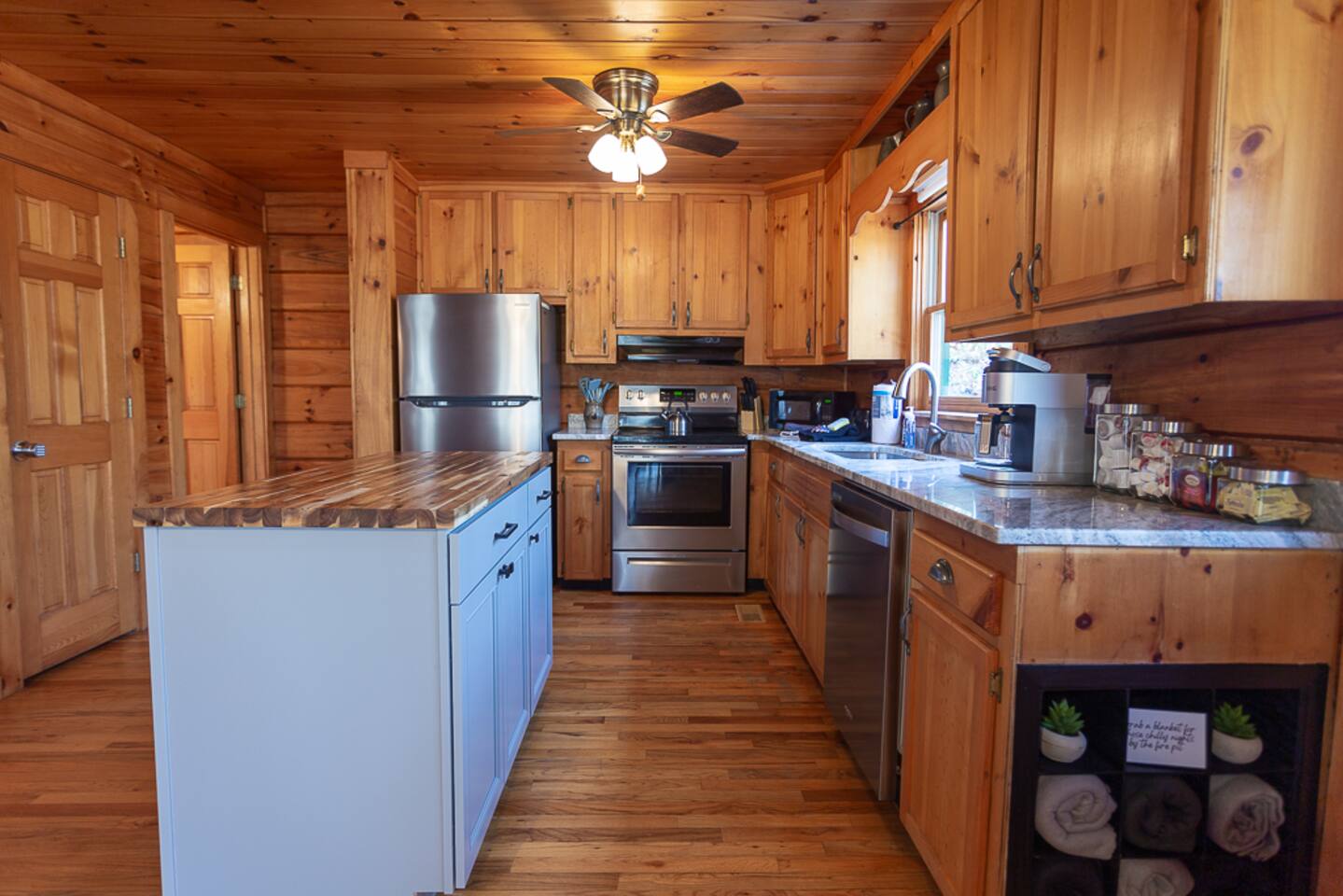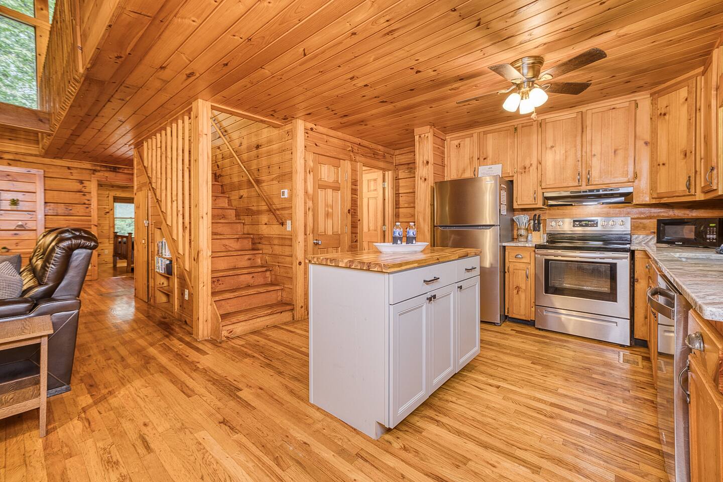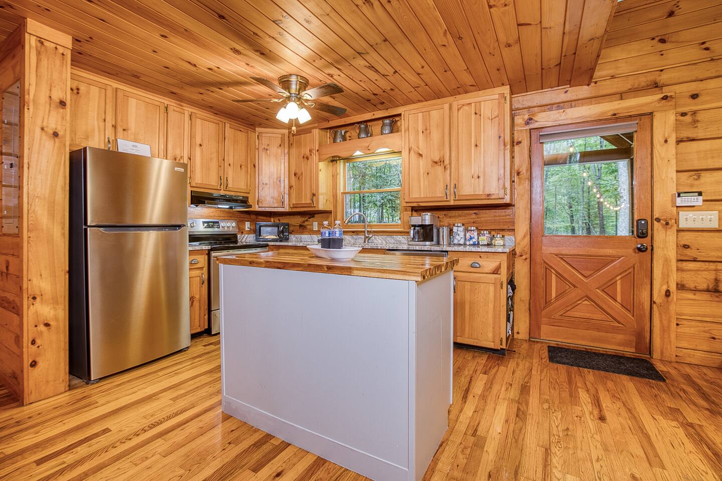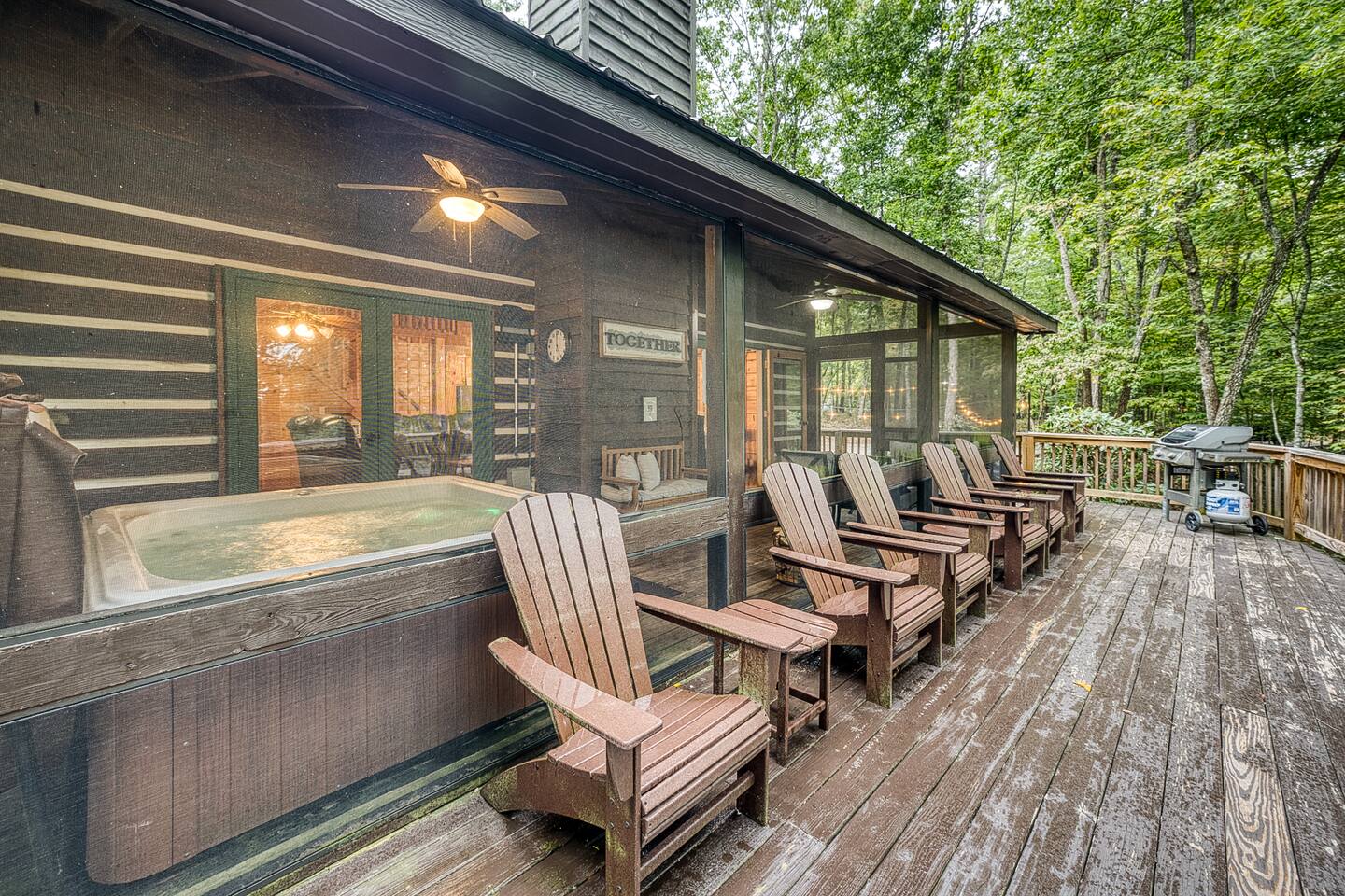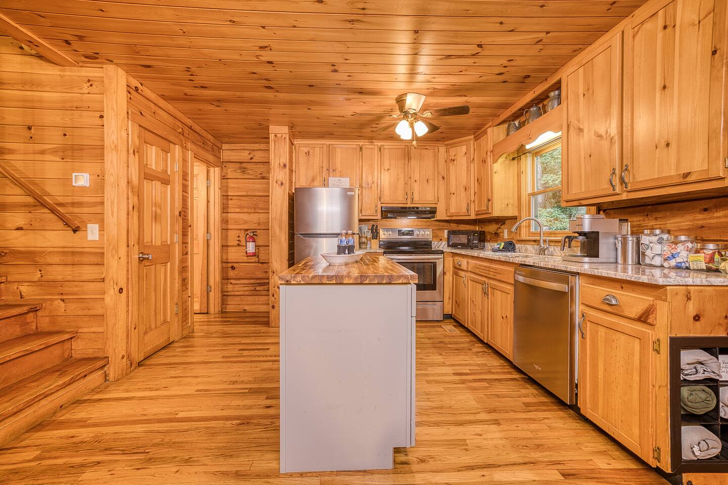 Enjoy a serene retreat where we don't just allow dogs - we LOVE them! Dogs stay free and enjoy amenities like a leash, bowls, crate, toys, towels, & waste bags. After exploring the mountains, unwind while enjoying a fire pit, hot tub, outdoor games, & spacious deck. The fun continues inside with arcade games, board games, & puzzles. Perfect for relaxing with family or friends, surrounded by nature. Highlights ☀ Sleeps 6: 1 king (upstairs), 2 queens (one in each downstairs bedroom) ☀ 2 bathrooms with standing showers + a jacuzzi tub in upstairs bathroom (toiletries included) ☀ No pet fee (up to 2 dogs) ☀ Dog amenities: leash, bowls, 1 crate, bags, toys, towel, flashlight ☀ Private cabin at end of the street surrounded by woods ☀ Indoor & outdoor games: cornhole, giant Jenga, arcade games, board games, puzzles ☀ Wood-burning fireplace (firewood included) ☀ Smart TVs in all bedrooms and living room ☀ Propane grill (propane included) Guests love: - Host responsiveness & communication - Thoughtful dog amenities - Peaceful environment - Endless entertainment, even on rainy days ★★ Kind words from past guests ★★ "My family and I were so relaxed here. Most peaceful vacation I've ever had." -Patricia "We selected this cabin for it's location, amenities and dog friendliness. We were pleased on all three counts and were very comfortable during our stay. The entire place was super clean." -M "What a great weekend away! This was a perfect place to enjoy some time in the woods with the whole family, even our little four legged friend was able to join! From the sweet welcome gift waiting for us when we walked in to the games, hot tub, and all the kitchen supplies we needed to prepare a gourmet dinner, there really wasn't anything else we could have asked for. Thanks Jessica for making our stay better than we even imagined it would be." -Stephanie "Jessica is an amazing host. The cabin is exactly as pictured, absolutely beautiful, clean, and super cozy." -Jelanie ☆ Primary Bedroom (Upstairs) - King bed - Ensuite bathroom with shower and jacuzzi tub ☆ Bedrooms 2 & 3 (Downstairs) - Queen bed in each - Standing shower - Full washer and dryer (laundry pods included) ☆ Kitchen - Keurig AND drip coffee (K-cups included) - Fully equipped with pots, pans, crockpot, baking dishes, serving platters, toaster, food processor, mixer, and more - Dining space for 6 - Included extras: k-cups, tea, creamer, Splenda, salt, pepper, cooking oil, hand soap, dish soap, dishwasher tabs ☆ Living Room - Seating for 6: recliner sofas and comfy arm chair - Arcade games, board games, puzzles, movies, and books for all ages - Wood-burning fireplace (firewood and fire starter included) ☆ Outdoors - Hot tub on the screened porch - Fire pit under string lights with marshmallow skewers and blankets (firewood included) - Propane grill (propane included) - Peaceful wrap-around deck with 6 Adirondack chairs - Lounge furniture for 6 - Games: giant jenga and cornhole ☆ Dogs - Max 2 dogs please - Amenities for dogs: 1 crate, food and water bowls, leash, waste bags, flashlight, toys, and towels - *IMPORTANT: dogs must be house-trained and well-behaved. No puppies please. Please keep dogs off furniture. Dogs must be leashed outside (there could be wild animals). Please clean up after your dog. ☆ WiFi - Internet speeds are around 15-20 mbps download, but internet can be spotty due to rural mountain location