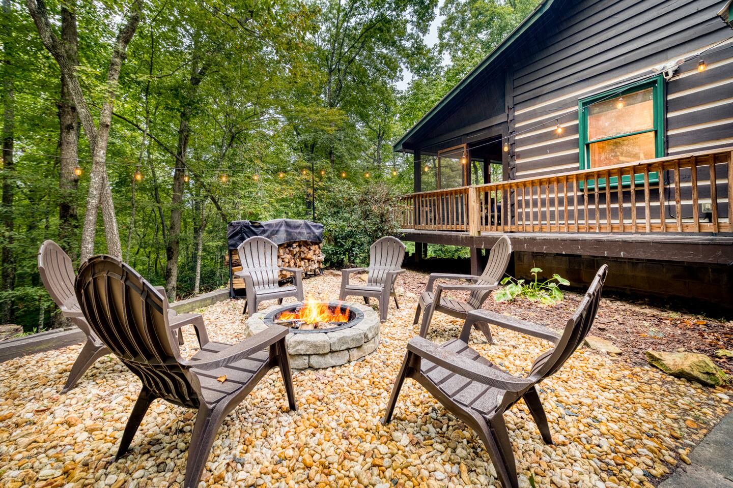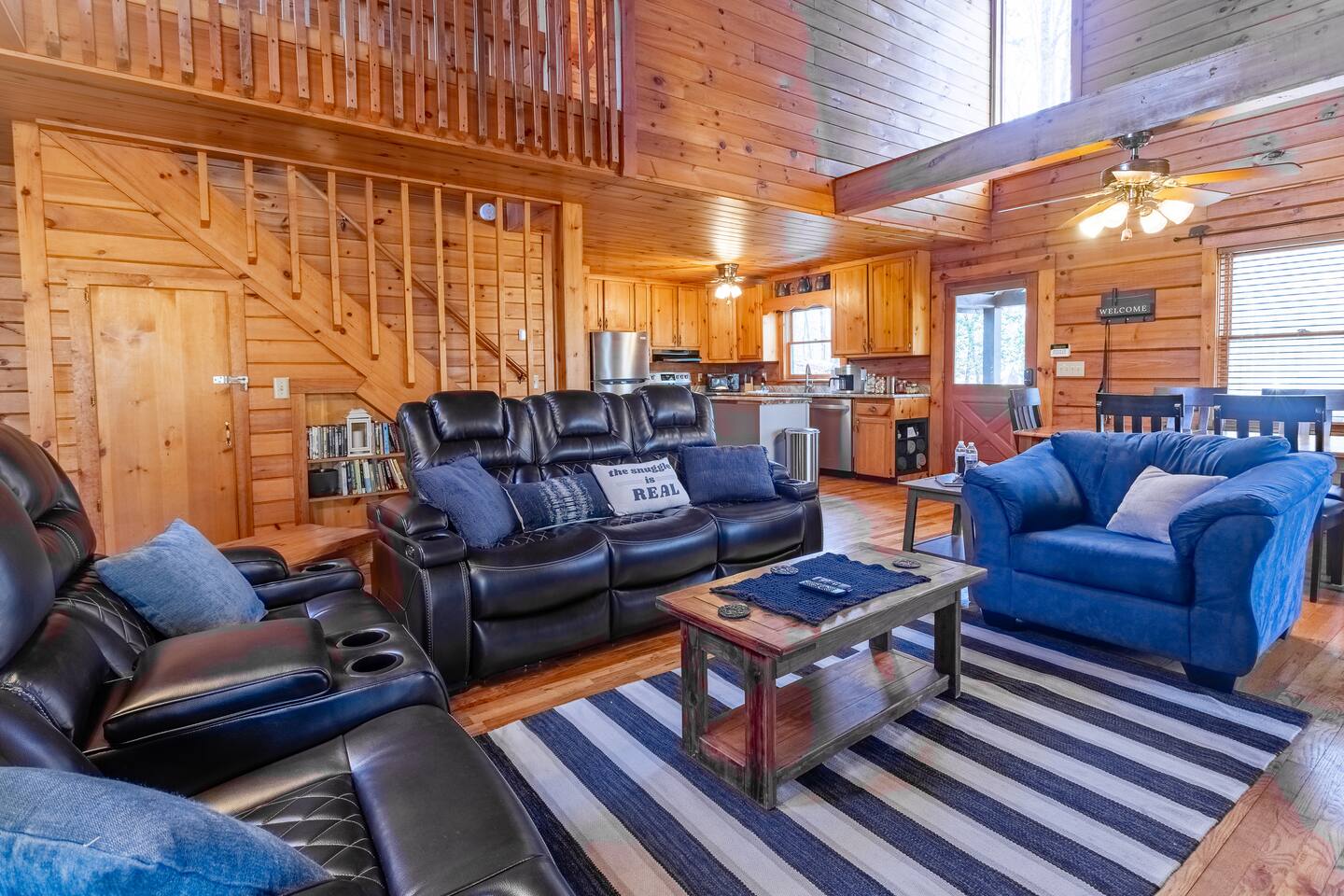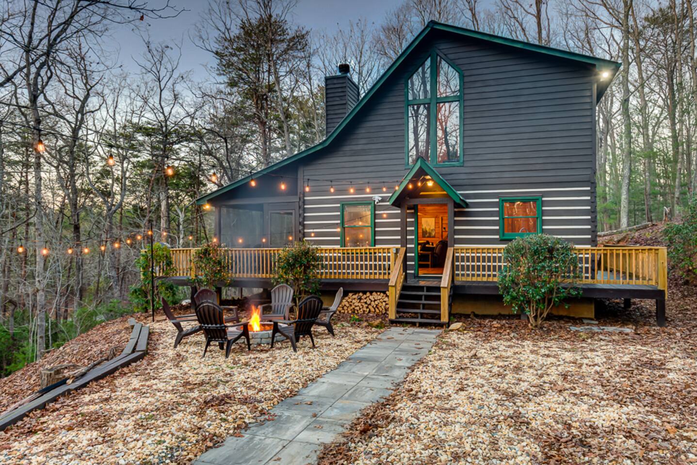 ☀ Private cabin 15 mins from downtown Blue Ridge ☀ Private + surrounded by trees ☀ Dog stay free and get a leash, bowls, crate, bags, toys, flashlight, & more ☀ Outdoor fun: fire pit, hot tub, large deck, giant Jenga, Cornhole ☀ Indoor fun: board games, puzzles, & arcade games ☀ 5 minutes to hiking, 12 minutes to Lake Blue Ridge