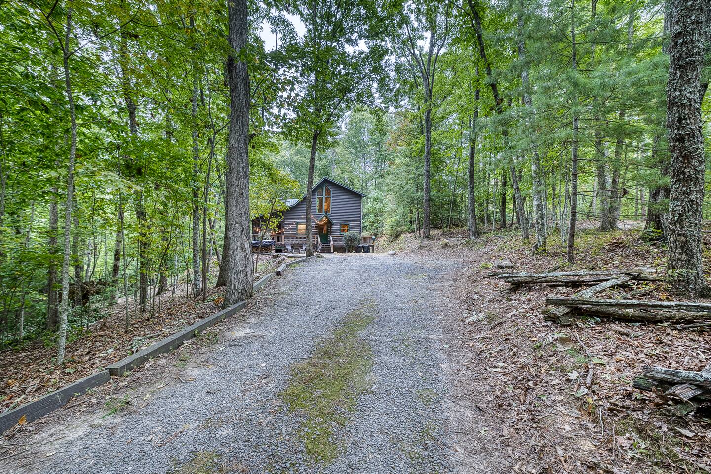 - The roads in our neighborhood leading to the cabin are bumpy, gravel roads. Cars that sit low to the ground may experience trouble on the gravel roads. - The driveway can accommodate 2-3 cars.