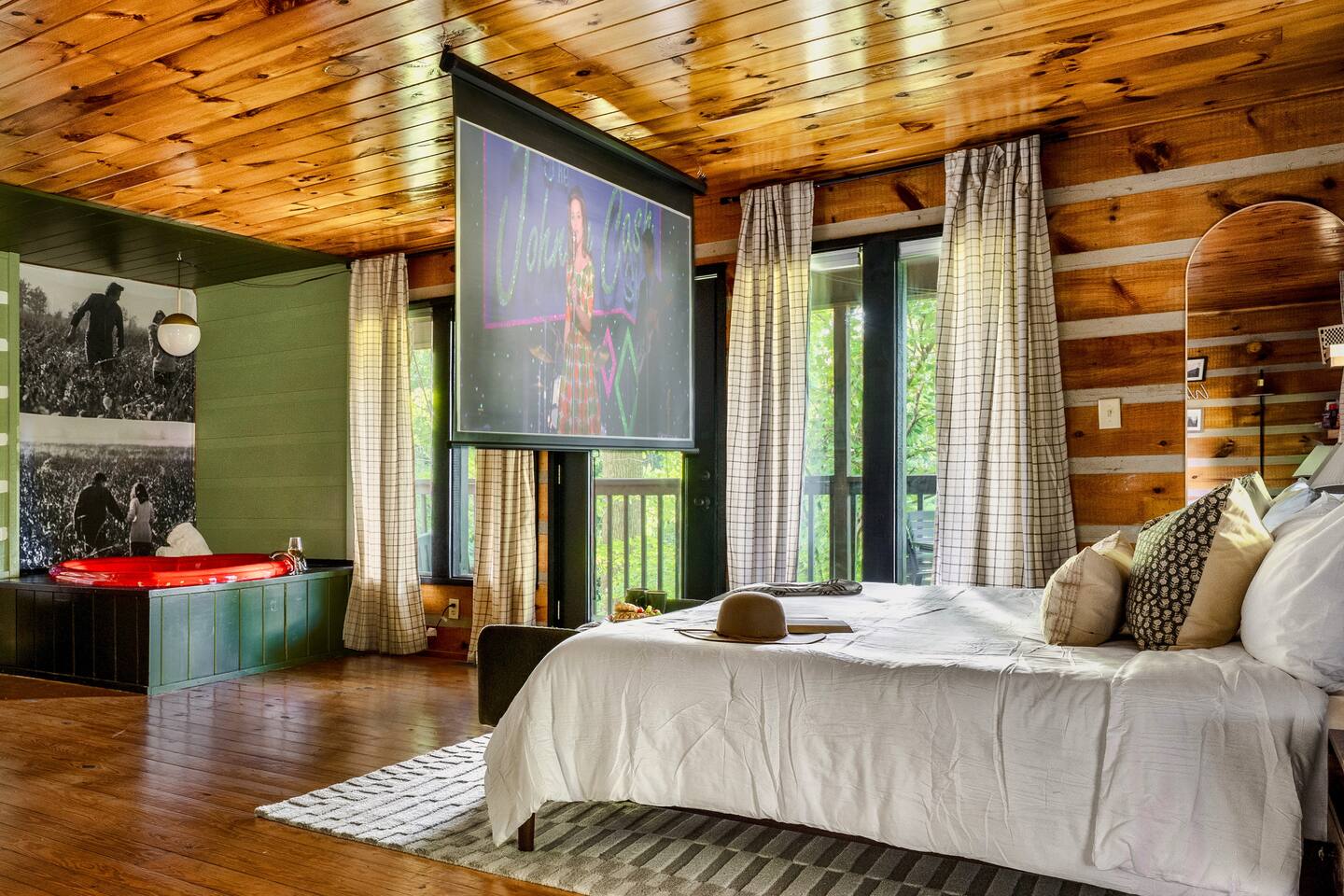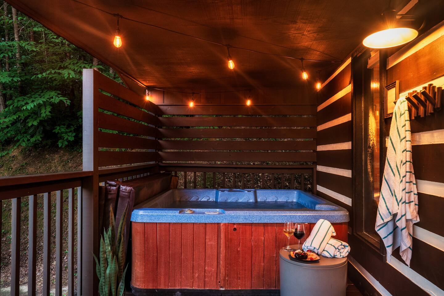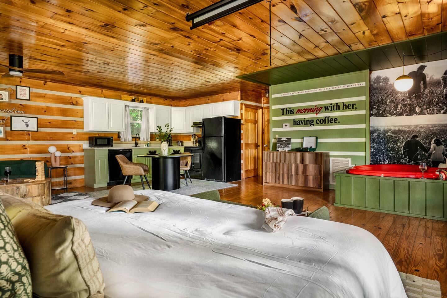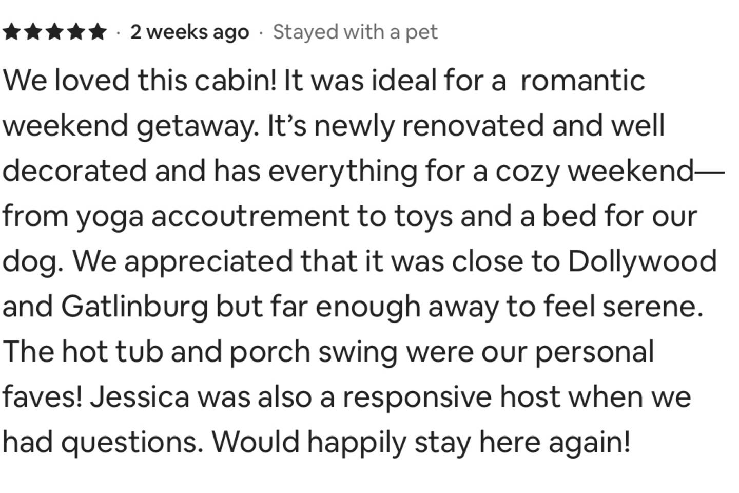 Welcome to Tennessee, Together. This romantic, private studio cabin is your invitation to slow down and truly connect. Nestled in the mountains just 7 minutes from downtown Pigeon Forge, it’s designed for couples seeking peace, privacy, and a little adventure. Soak in the heart-shaped jacuzzi tub, stargaze from your private dome with a telescope, sweat it out in the sauna, or unwind in the hot tub after a day at the park. With no WiFi, this is a space to unplug and be present—together. ★ Highlights • Sleeps 2 | 1 King bed • Heart-shaped jacuzzi tub in main area • Hot tub, sauna & star-gazing dome • Projector screen + DVD player • Books & games curated for couples • Just 7 minutes to Pigeon Forge, 13 to Dollywood, 17 to Gatlinburg Guests love: ✔️ The peace & privacy ✔️ Close-to-everything location ✔️ Spotless cleanliness ✔️ Responsive, thoughtful hosting ★ What past guests say • "Very refreshing, great getaway… very close to everything. Comfy and private!" – Tristan • "Absolutely adorable cabin. Very private and cozy." – April • "Exceeded all expectations... cozy atmosphere and exceptional hospitality." – Sathya ★ Sleeping Area • King-size bed with cozy linens ★ Kitchen • Keurig w/ K-cups, creamer & Splenda • Fully stocked: pots, pans, crockpot, bakeware • Pantry basics: salt, pepper, oil • Dish soap, hand soap, dishwasher tabs included ★ Bathroom • Private bathroom with tub/shower combo • Heart-shaped jacuzzi tub in living area ★ Living Room • Board games & books • Yoga mat, blocks, weights, & resistance bands • No WiFi – on purpose! ★ Outdoor Space • Private sauna • Star-gazing dome w/ telescope • Hot tub under the stars • Wraparound deck with bed swing, Adirondack chairs, & outdoor dining • Charcoal grill (BYO charcoal) • Driveway fits 2 vehicles ★ Bonus Perks • In-unit washer & dryer (pods included) • Dog-friendly! Includes crate, bowls, leash, toys, towels & waste bags