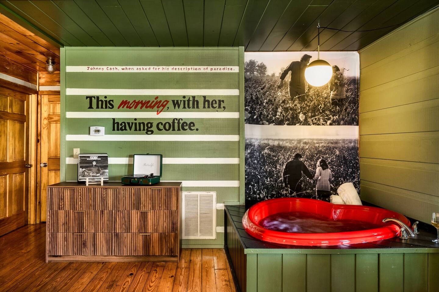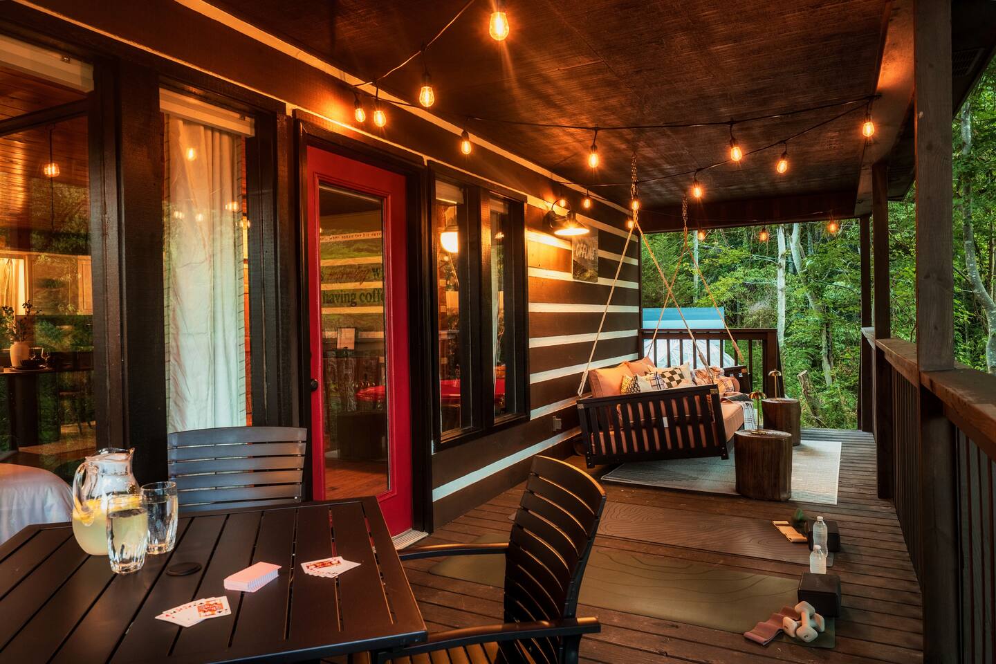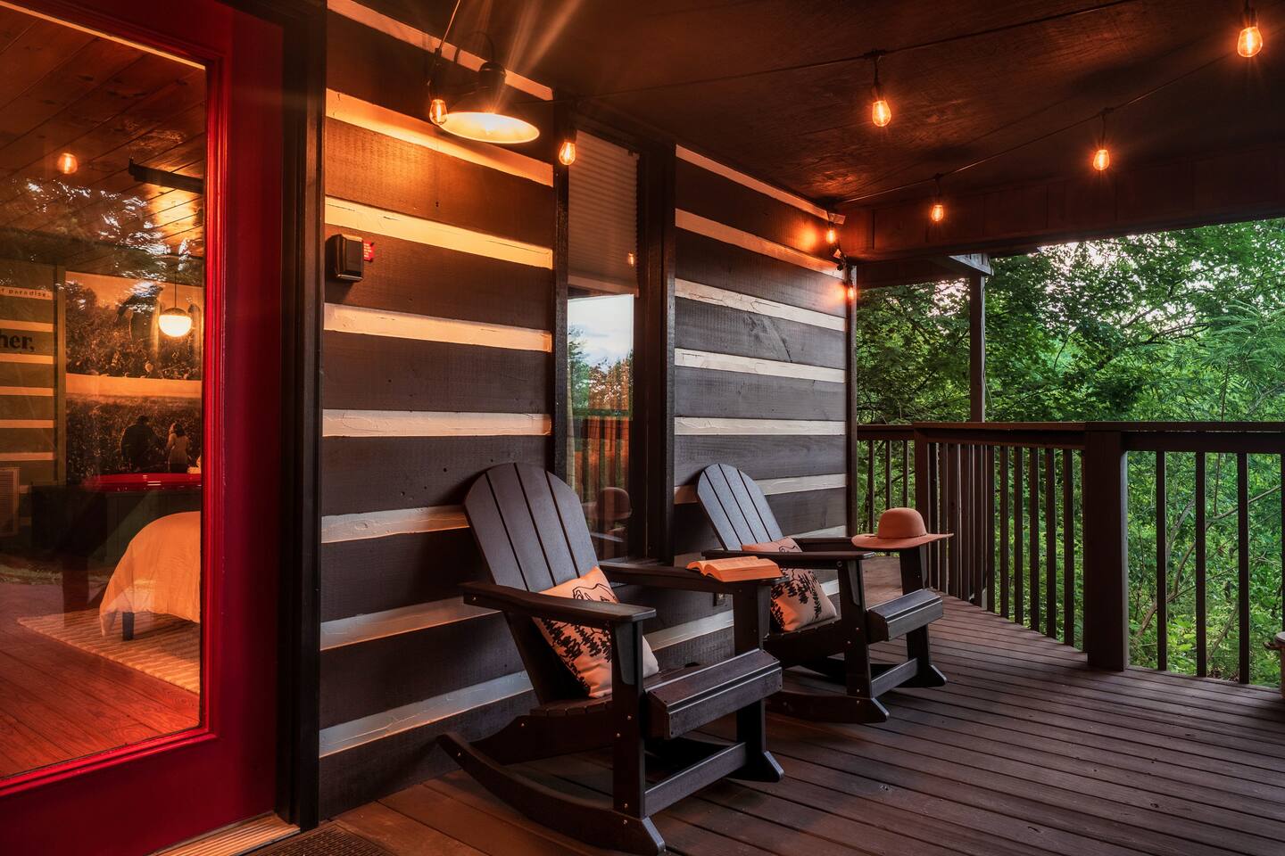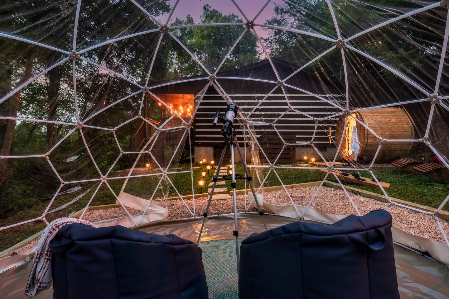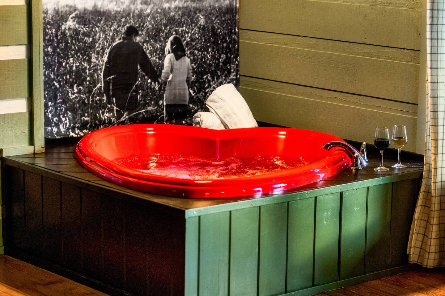 Welcome to Tennessee, Together. This romantic, private studio cabin is your invitation to slow down and truly connect. Nestled in the mountains just 7 minutes from downtown Pigeon Forge, it’s designed for couples seeking peace, privacy, and a little adventure. Soak in the heart-shaped jacuzzi tub, stargaze from your private dome with a telescope, sweat it out in the sauna, or unwind in the hot tub after a day at the park. With no WiFi, this is a space to unplug and be present—together. ★ Highlights • Sleeps 2 | 1 King bed • Heart-shaped jacuzzi tub in main area • Hot tub, sauna & star-gazing dome • Projector screen + DVD player • Books & games curated for couples • Just 7 minutes to Pigeon Forge, 13 to Dollywood, 17 to Gatlinburg Guests love: ✔️ The peace & privacy ✔️ Close-to-everything location ✔️ Spotless cleanliness ✔️ Responsive, thoughtful hosting ★ What past guests say • "Very refreshing, great getaway… very close to everything. Comfy and private!" – Tristan • "Absolutely adorable cabin. Very private and cozy." – April • "Exceeded all expectations... cozy atmosphere and exceptional hospitality." – Sathya ★ Sleeping Area • King-size bed with cozy linens ★ Kitchen • Keurig w/ K-cups, creamer & Splenda • Fully stocked: pots, pans, crockpot, bakeware • Pantry basics: salt, pepper, oil • Dish soap, hand soap, dishwasher tabs included ★ Bathroom • Private bathroom with tub/shower combo • Heart-shaped jacuzzi tub in living area ★ Living Room • Board games & books • Yoga mat, blocks, weights, & resistance bands • No WiFi – on purpose! ★ Outdoor Space • Private sauna • Star-gazing dome w/ telescope • Hot tub under the stars • Wraparound deck with bed swing, Adirondack chairs, & outdoor dining • Charcoal grill (BYO charcoal) • Driveway fits 2 vehicles ★ Bonus Perks • In-unit washer & dryer (pods included) • Dog-friendly! Includes crate, bowls, leash, toys, towels & waste bags