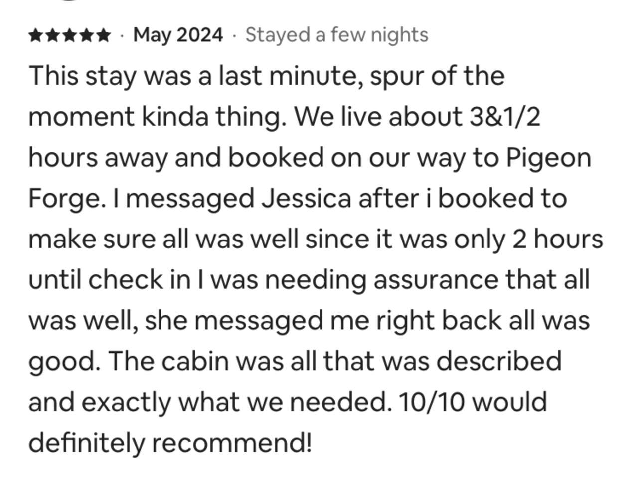 NEARBY ATTRACTIONS: - 2 minutes to Mountain Mist Farms and winery - 5 minutes to brand new mountain bike and off-road park WildSide - 7 minutes to downtown Pigeon Forge - 13 minutes to Dollywood - 17 minutes to Gatlinburg - 19 minutes to Gatlinburg Great Smoky Mountain National Park trailhead OTHER IMPORTANT NOTES: - This is a NON-SMOKING cabin. - The driveway is steep, but generally easy to navigate. 4-wheel drive is recommended during winter or inclement weather. We cannot offer refunds due to inclement weather. A trailer will not fit. - There is NO WIFI. We recommend taking this opportunity to unplug. :) (Cell reception is typically strong though!)